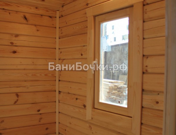 Получилось, конечно, дешевле, чем обычно, но как всегда очень достойно. Сборка осуществлялась из сухого профилированного бруса. Внутри парилка обшита кедром. Дверь также кедровая бессучковая — очень надежная. Печка, мебель, двери-окна — всё-всё уже входит в стоимость, указанную на сайте. Отдельно только фундамент и доставка.
